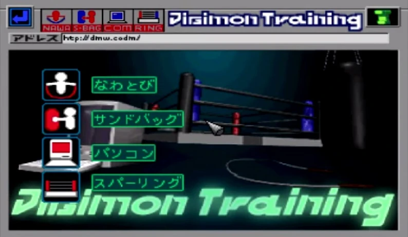 O jogador pode treinar o Digimon de três formas: Saltar à Corda (なわとび Nawatobi), que aumenta a Rapidez, Sand Bag (サンドバッグ Sando Baggu), que aumenta o Ataque, Computador (パソコン Pasokon), que aumenta a Inteligência, e Sparring (スパーリング Supāringu), que aumenta o Ataque, a Inteligência e a Rapidez.
