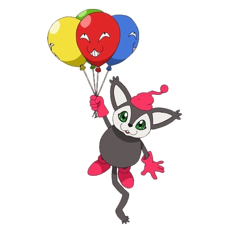 Um Digimon Besta de nível Armor que evoluiu através do poder do DigiMental da Bondade. Com uma aparência fofa e os característicos balões coloridos, este Digimon Puppet parece ter saído de uma aldeia de um conto de fadas qualquer. No entanto, quando é atacado e fica irritado, dispersa os balões - carregados de poderosos vírus informáticos - para depois os detonar. Prefere solos secos e arenosos e costuma esconder-se na areia, deixando apenas os balões de fora. Quando não está no chão, dá pulos pelo ar, agarrado aos balões. Apesar de não ser assim tão veloz, apanhá-lo pode ser uma tarefa irritante. O seu movimento especial, Mad Balloon Bomb, é uma técnica terrível com a qual germina poderosos vírus informáticos dentro dos balões que segura na sua mão para depois os rebentar sobre a cabeça do adversário, durante a batalha.[2]