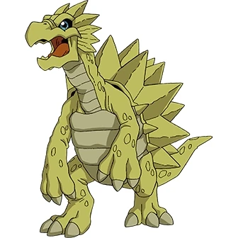 Um Digimon de tipo tartaruga terrestre armado com uma carapaça repleta de lâminas afiadas. Por tanto esta carapaça como o seu corpo terem sido formados aos mais elevados níveis de densidade, é mais pesado do que parece, e produz estrondos aterrorizantes com cada passo que dá. Para além disso, tem um choro metálico e agudo, motivo pelo qual é apelidado de "Digimon Ruído." É extremamente lento quando se locomove normalmente, mas se retrair os membros e assumir uma forma discal, pode atingir velocidades superiores a 10 vezes o habitual. O seu movimento especial consiste em disparar as lâminas da carapaça como mísseis morteiros (Shell Phalanx).[1]